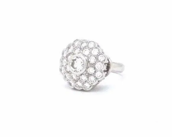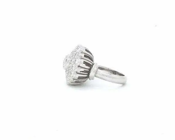 Anello in oro bianco CT 750, peso gr. 12,7, con diamante centrale ct 0,75 colore G e purezza Vs e pavè di ct complessivi 1,70 colore G purezza Vs.
