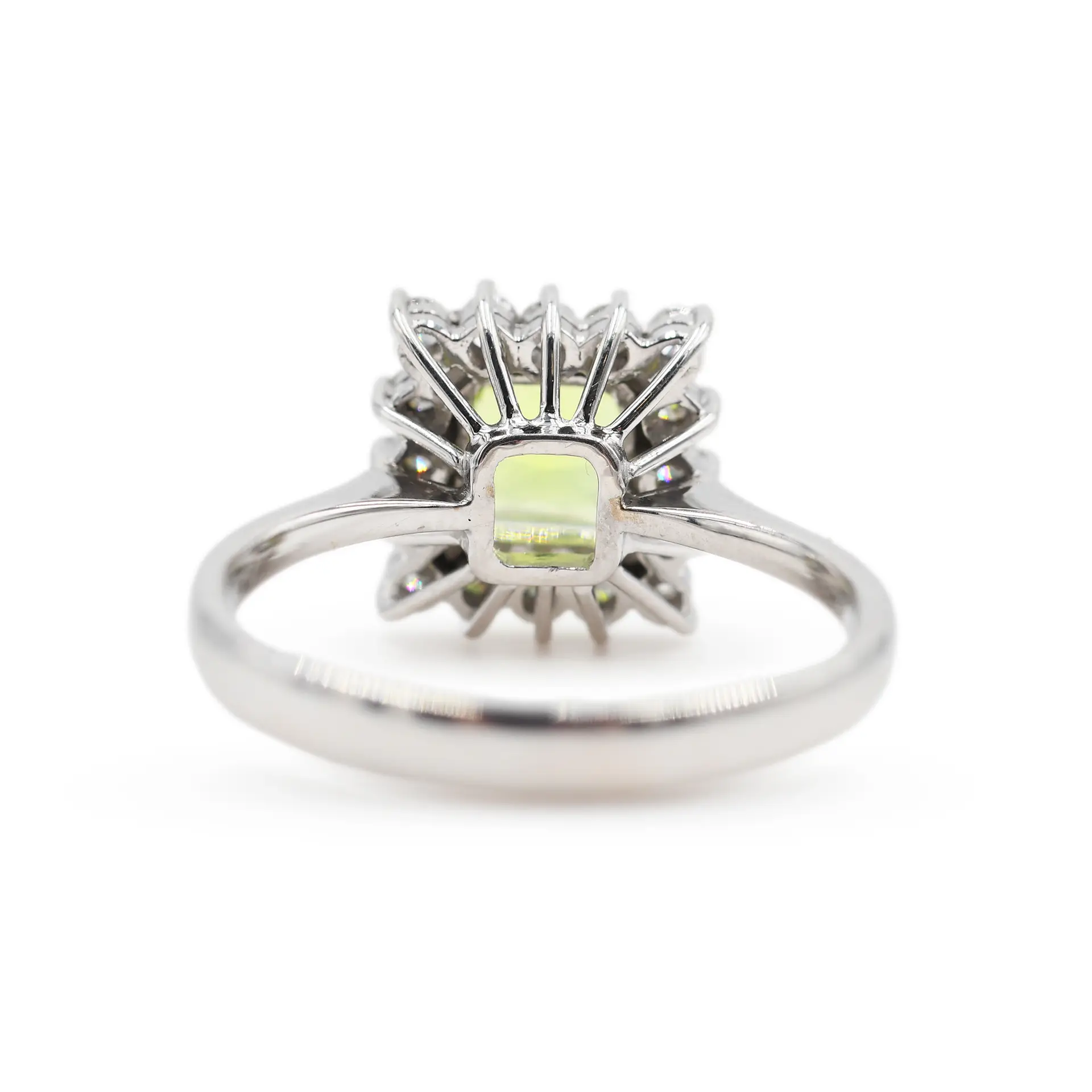 Scopri l’eleganza senza tempo di questo anello in oro bianco 14 carati, realizzato con un design raffinato e dal peso di 4 grammi. Il gioiello è impreziosito da un peridoto da 1 carato, una gemma dalle sfumature verdi uniche che catturano la luce, e da un pavé di diamanti da 0,32 carati, che aggiunge un tocco di brillantezza e luminosità. Questo anello è la scelta perfetta per chi cerca un accessorio elegante, ideale per occasioni speciali o per un regalo di classe.