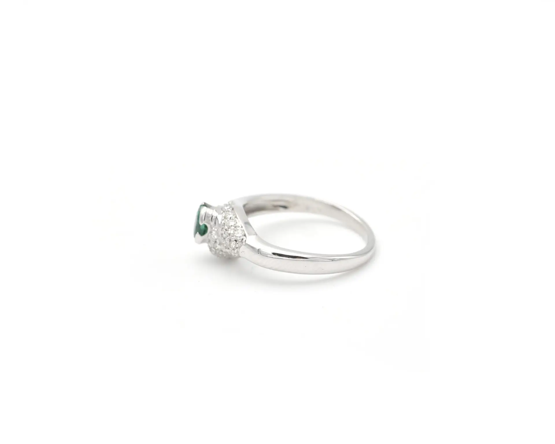anello in oro bianco 18 carati dal design raffinato e inusuale, pensato per chi cerca un gioiello unico e ricercato. Il protagonista è uno splendido smeraldo da 0,30 carati, incastonato con eleganza e valorizzato dalla brillantezza di diamanti da 0,19 carati, che ne esaltano la luce naturale. Con un peso di 3,5 grammi, questo anello con smeraldo e diamanti unisce artigianalità e stile, rendendolo perfetto per un’occasione speciale o come simbolo di un’eleganza senza tempo.