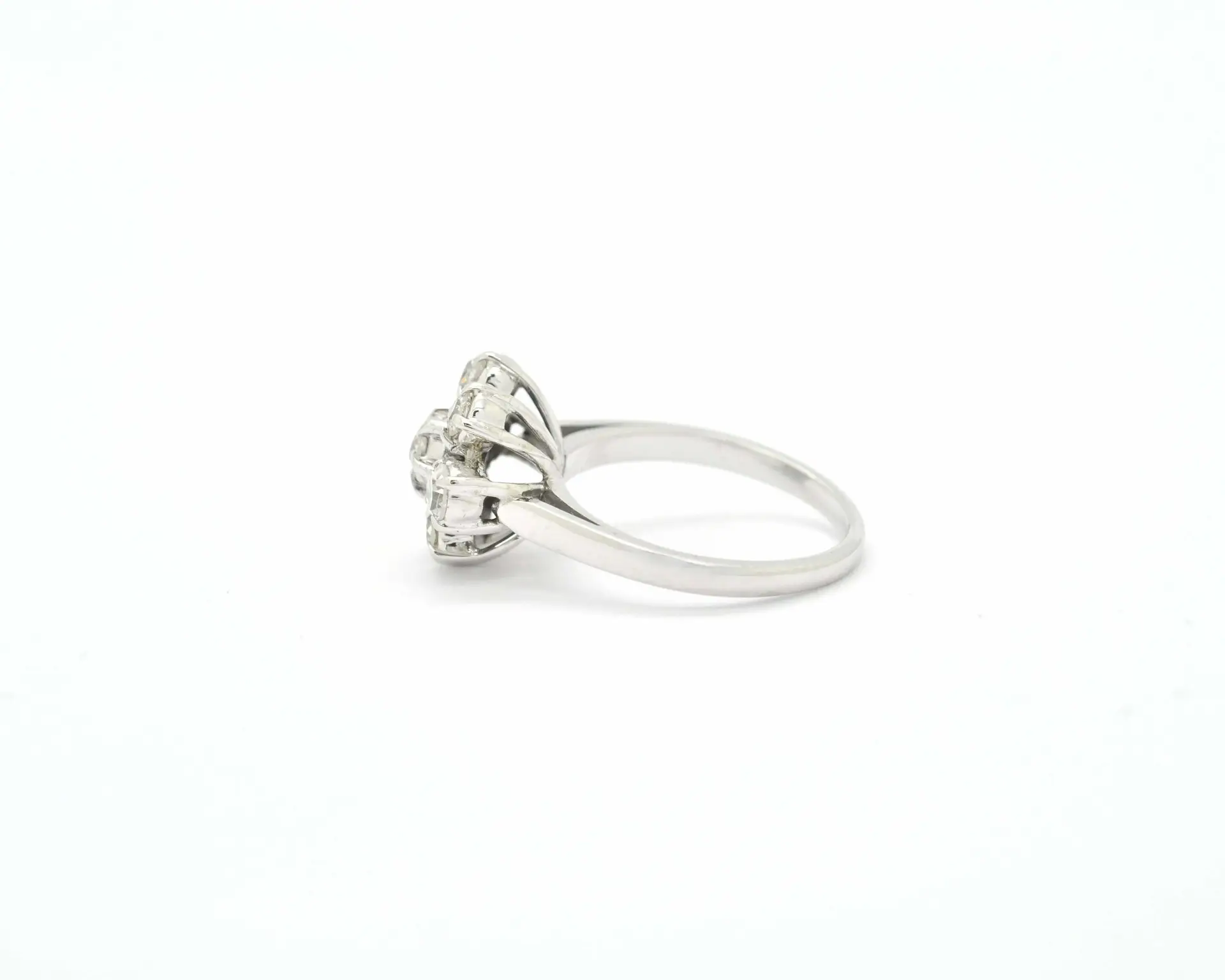 Raffinato anello in oro bianco 18 kt (750/000), dal peso di 5 grammi, impreziosito da diamanti per un totale di 0,50 carati con taglio “vecchia Europa” — un taglio antico e affascinante che dona alla luce un riflesso morbido e romantico. Un gioiello che unisce il fascino della tradizione a una lavorazione di qualità, perfetto per chi apprezza l’eleganza d’altri tempi con un tocco di autenticità.