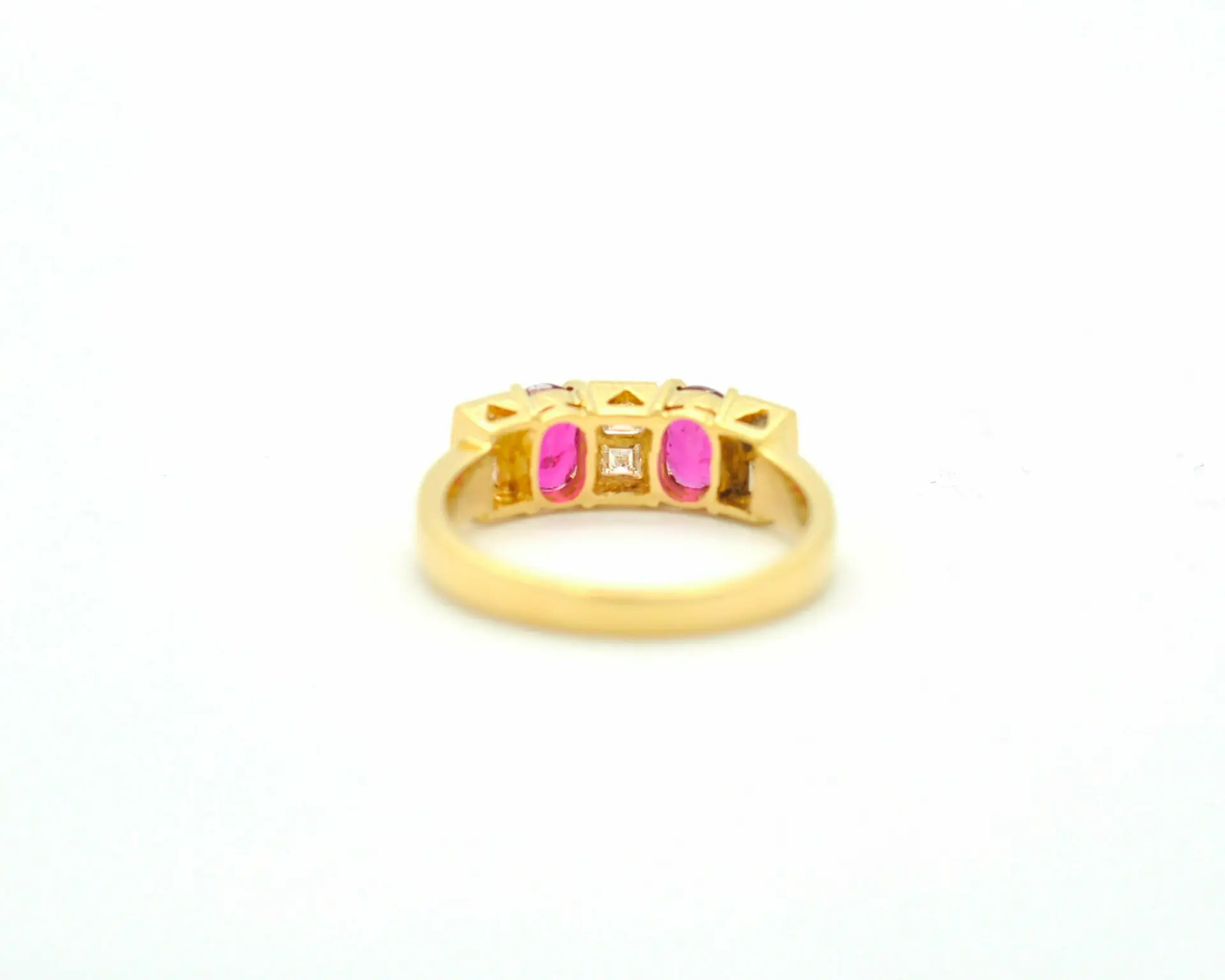 Elegante anello in oro giallo 18 kt dal peso di 4,2 grammi, impreziosito da un rubino centrale da 1,0 ct con taglio ovale, affiancato da diamanti dal taglio brillante per un totale di 0,30 ct, con colore G e purezza VVS2. La misura dell’anello è 13. Un gioiello raffinato, perfetto per ogni occasione speciale. Misura dell’ anello : 13