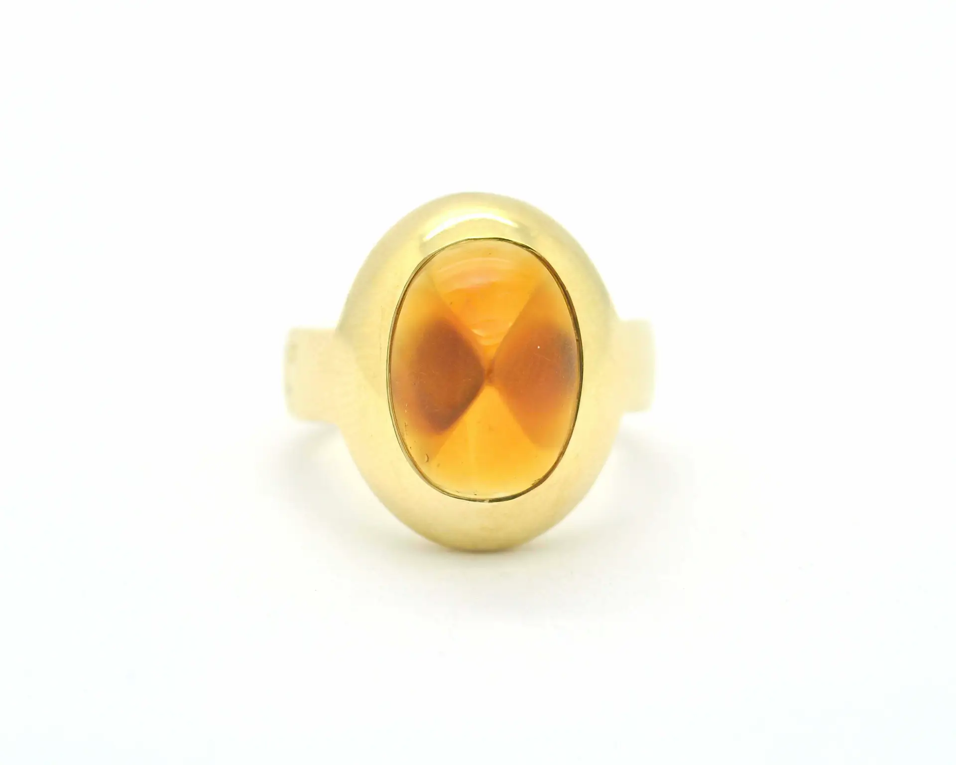 Affascinante anello vintage originale Pomellato, realizzato in pregiato oro giallo 18 kt (750/000), dal peso importante di 14,7 grammi. Protagonista assoluto è un luminoso quarzo citrino, dalla calda tonalità dorata, incastonato in un design audace e sofisticato tipico dello stile iconico della maison. Un pezzo unico, di grande carattere e personalità, perfetto per chi ama il fascino senza tempo del gioiello d’autore.