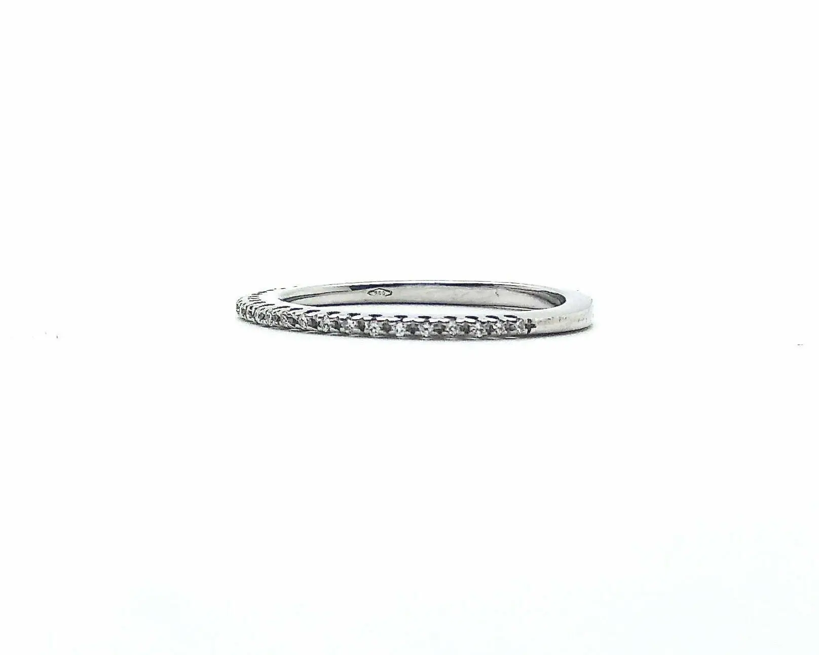 Anello veretta in oro bianco CT 750 del peso di gr. 2,2. Diamanti CT complessivi 0,20. Colore G e purezza Vs.