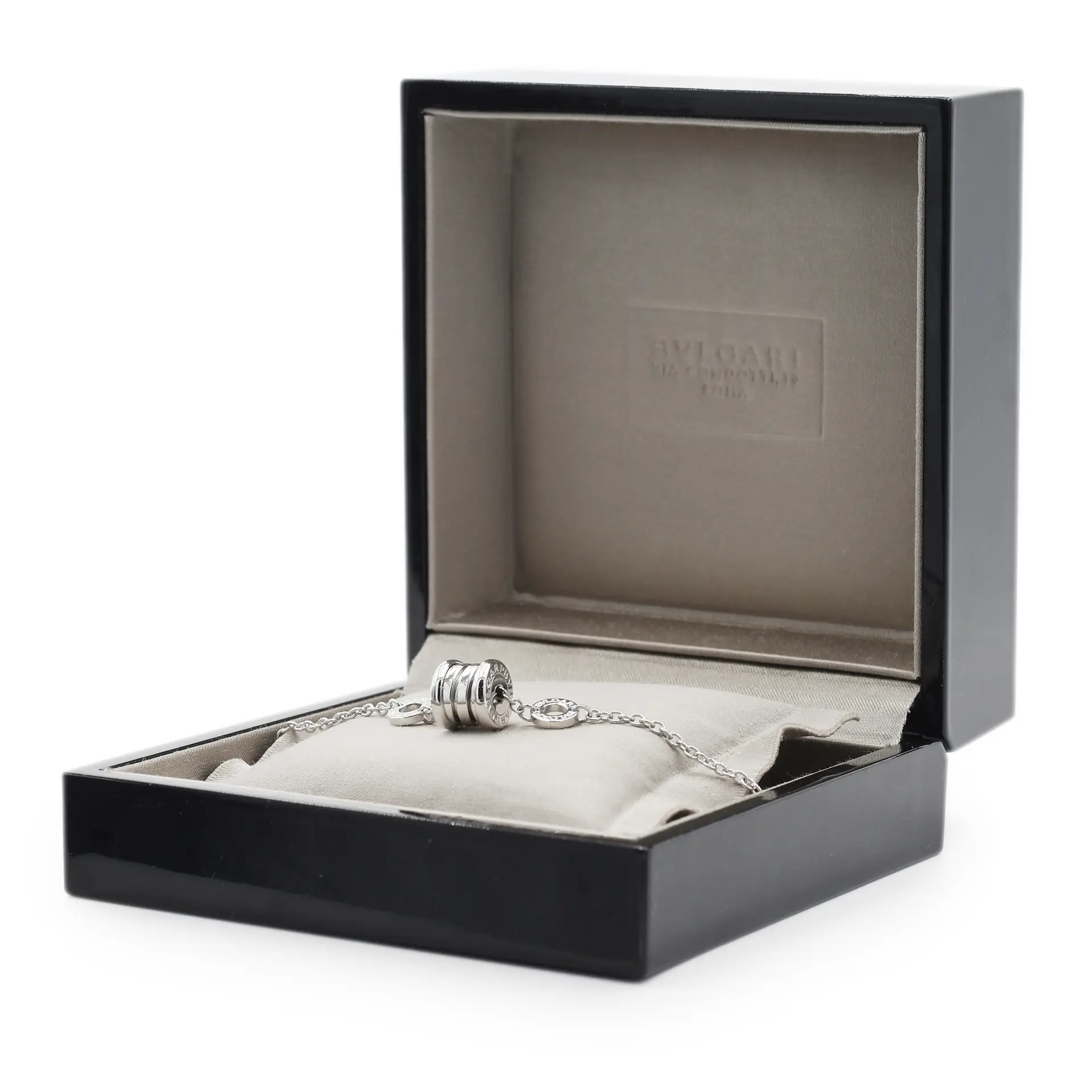 Il bracciale Bulgari in oro bianco da 6,5 grammi esprime con eleganza la tradizione del lusso italiano. Lavorato con cura nei dettagli, è l’accessorio perfetto per chi desidera uno stile discreto ma distintivo. Realizzato in oro bianco lucido, unisce raffinatezza e design senza tempo, ideale per completare ogni look con un tocco di classe autentica.