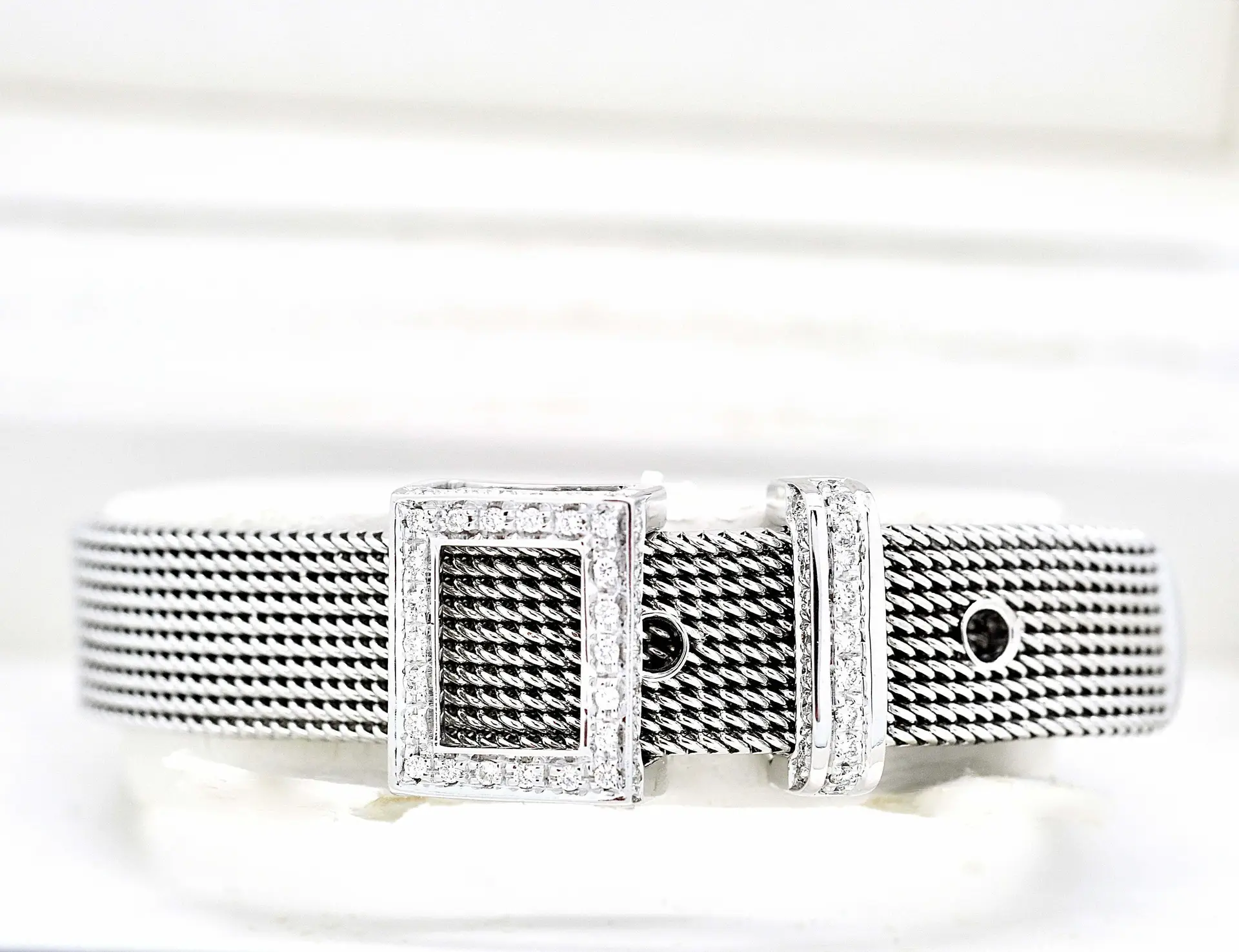 Bracciale regolabile Damiani in oro bianco 18 Kt di grammi 39, con fibbia in diamanti di ct complessivi 0,38, colore H, purezza VS.