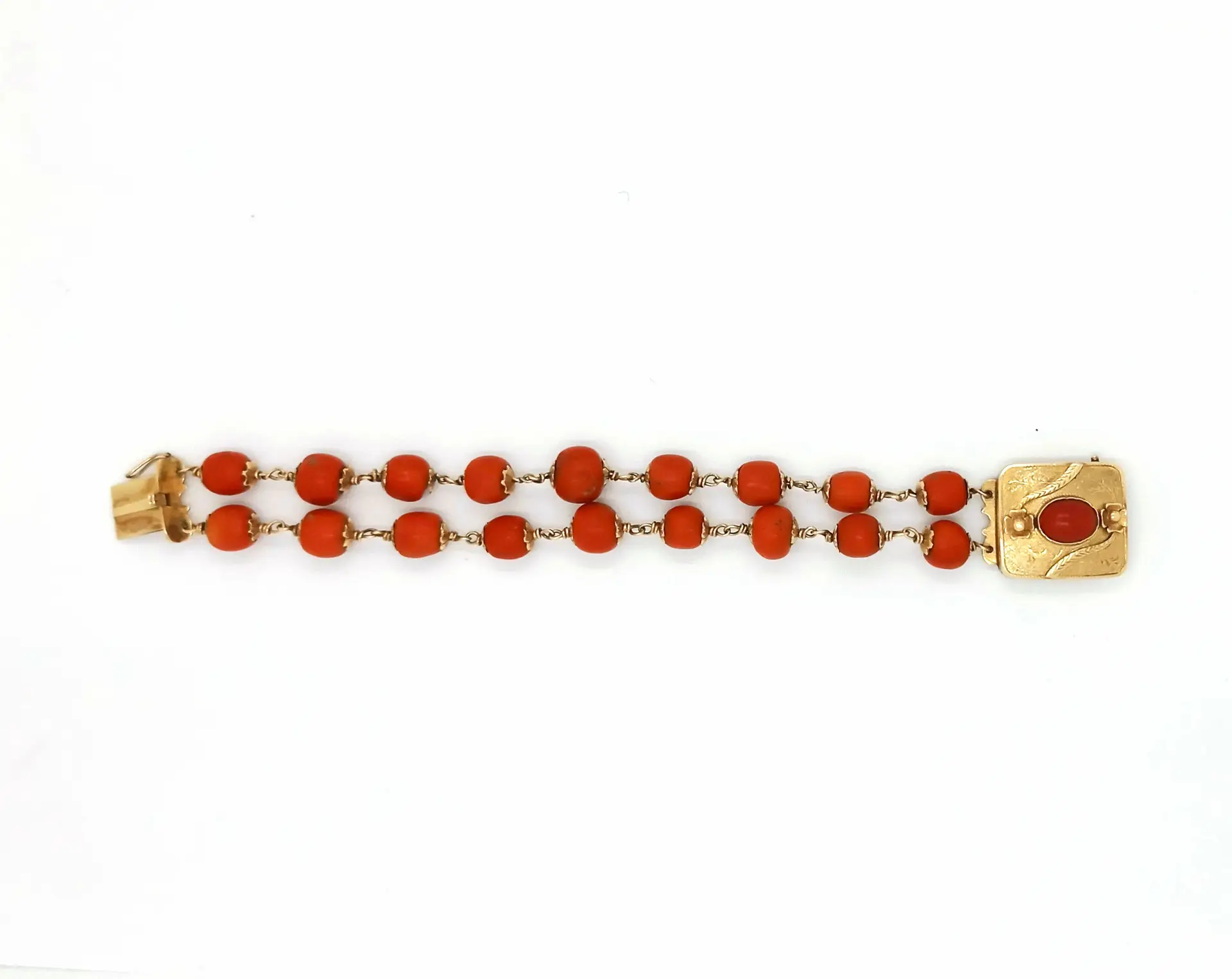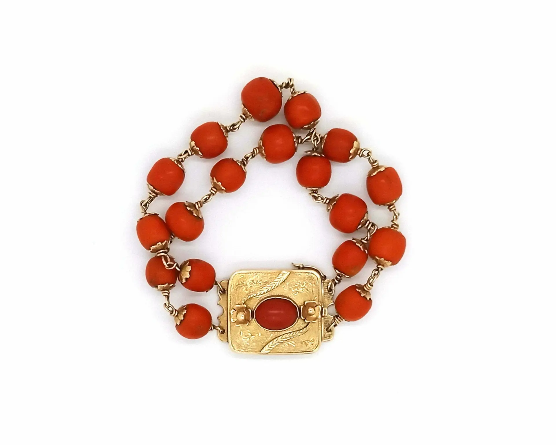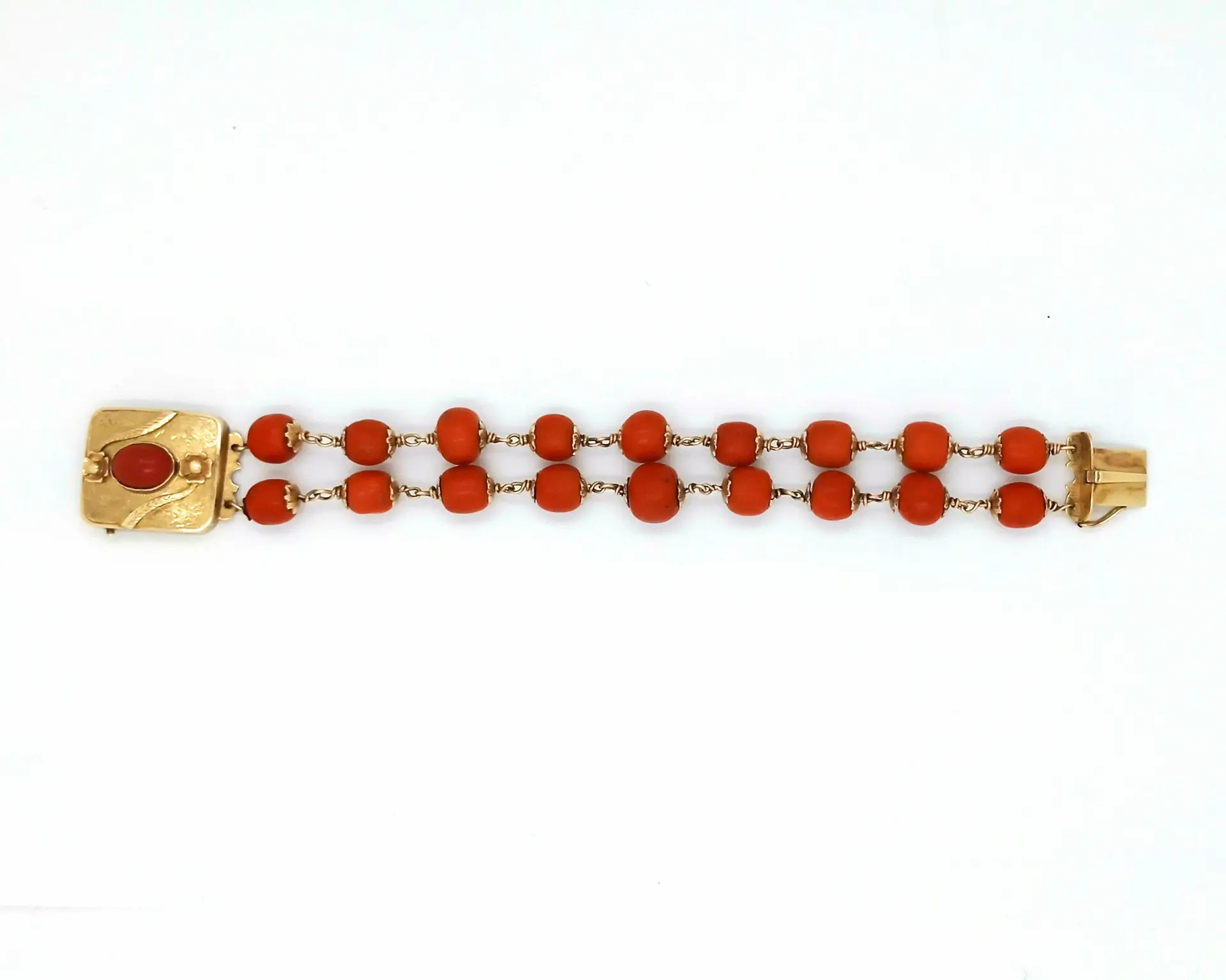 Bracciale con corallo, in oro giallo ct 14/585 del peso di 52,5 gr.