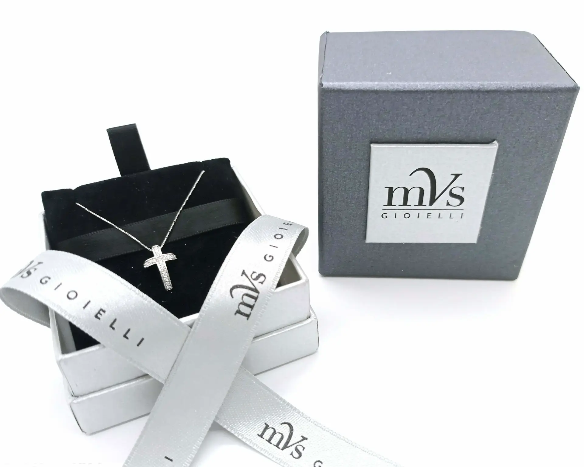 Ciondolo in oro bianco ct 750 del peso di 2,5 gr. Con diamanti di ct complessivi 0,20 colore G purezza Vs.