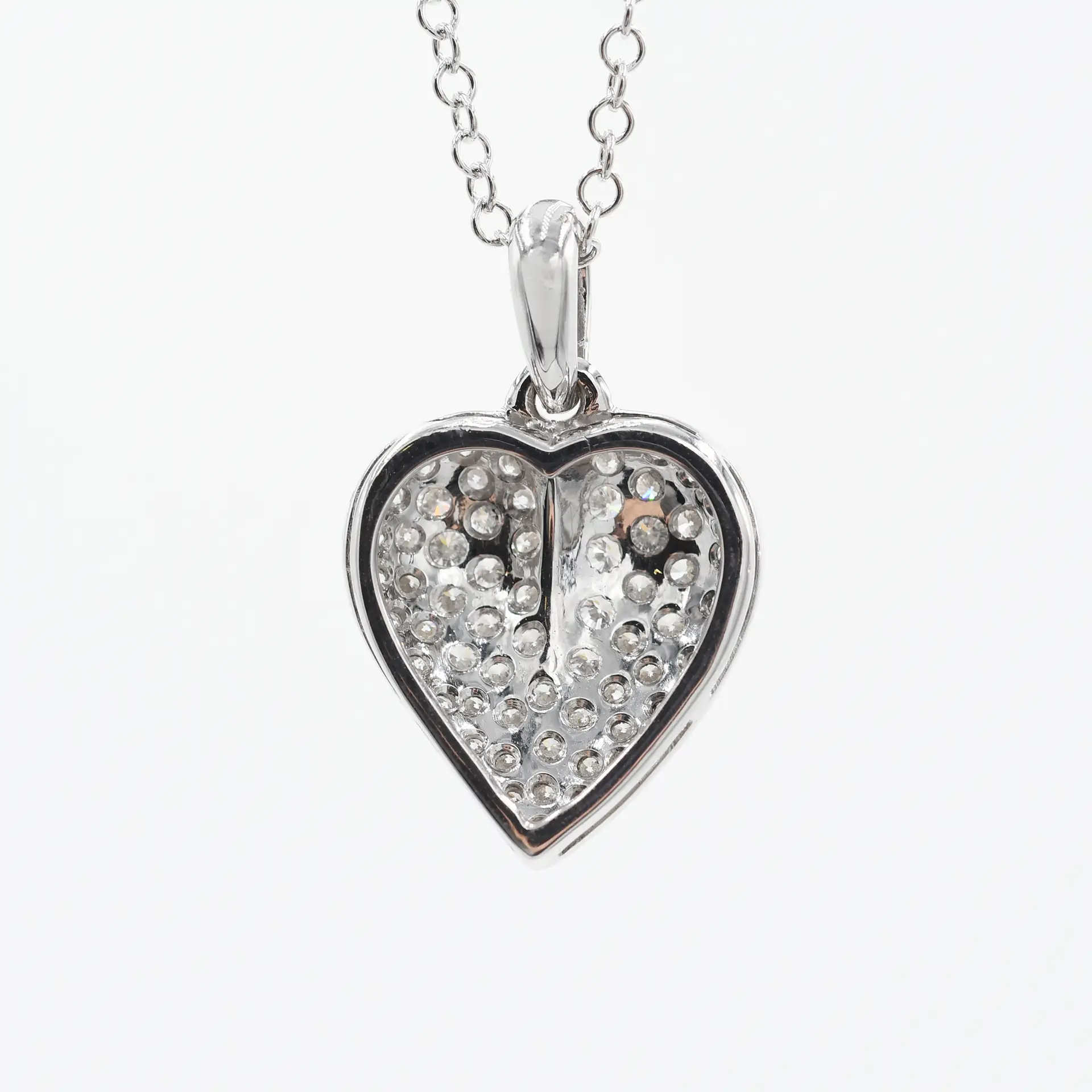Stupendo ciondolo a forma di cuore in oro bianco 18 carati, interamente ricoperto da diamanti per una caratura totale di 1,40 carati. Con un peso di 5,7 grammi, questo gioiello rappresenta un elegante simbolo di amore e raffinatezza. La sua brillantezza e il design romantico lo rendono ideale per regali speciali o per aggiungere un tocco di lusso al proprio stile.