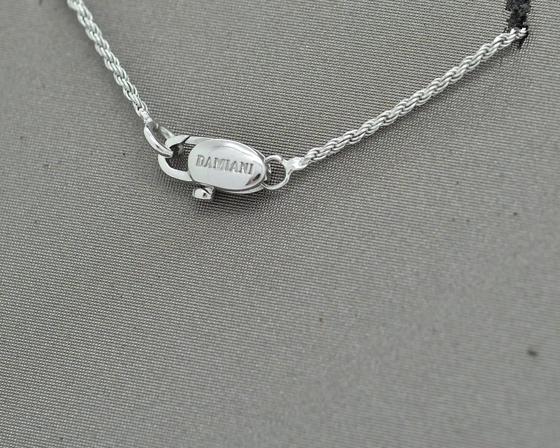 Collana Damiani con ciondolo croce collezione Belle Époque in oro bianco 18 carati con diamanti e zaffiri gialli.