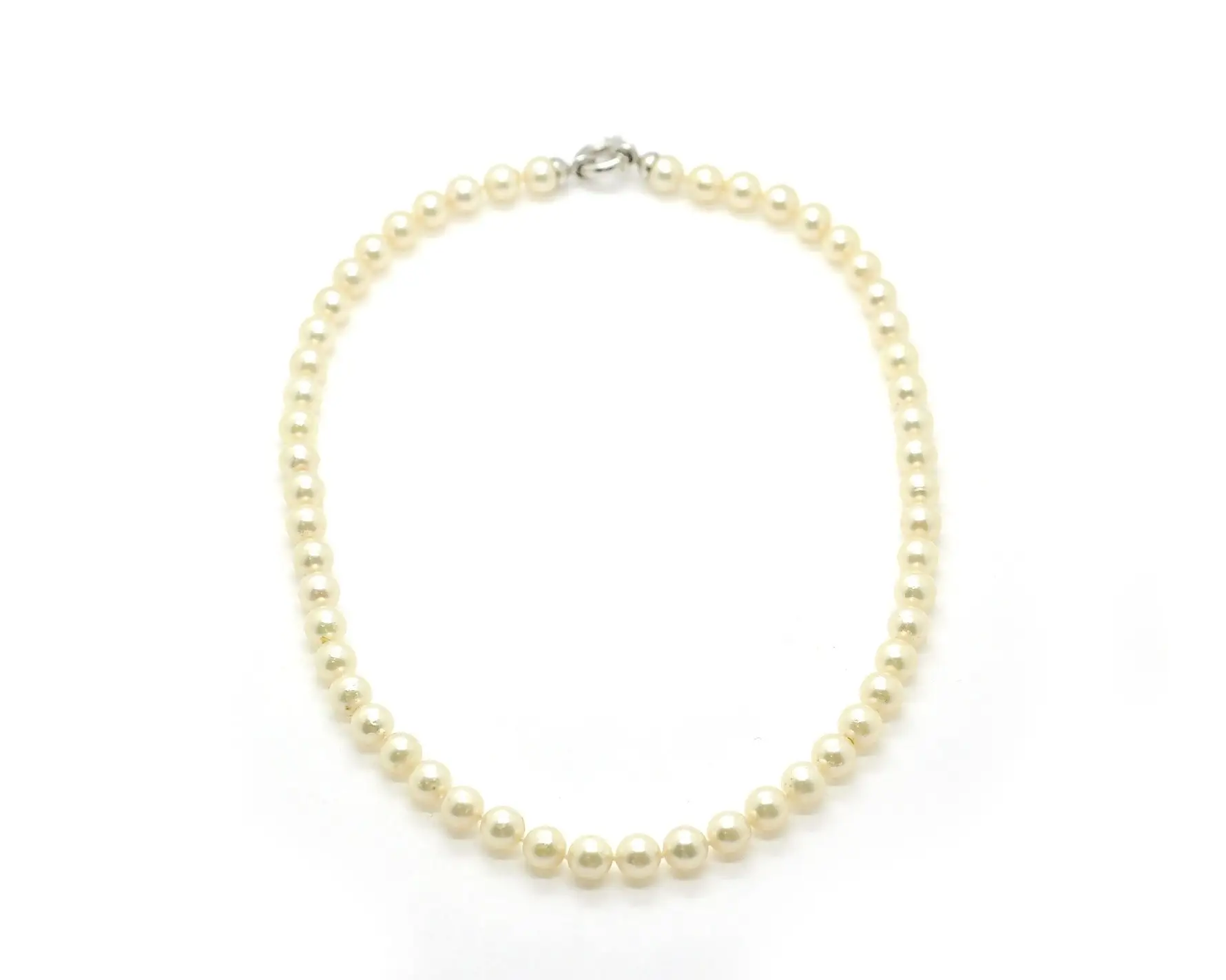 Collana di perle bianche Giappone con chiusura in oro bianco 18 carati.