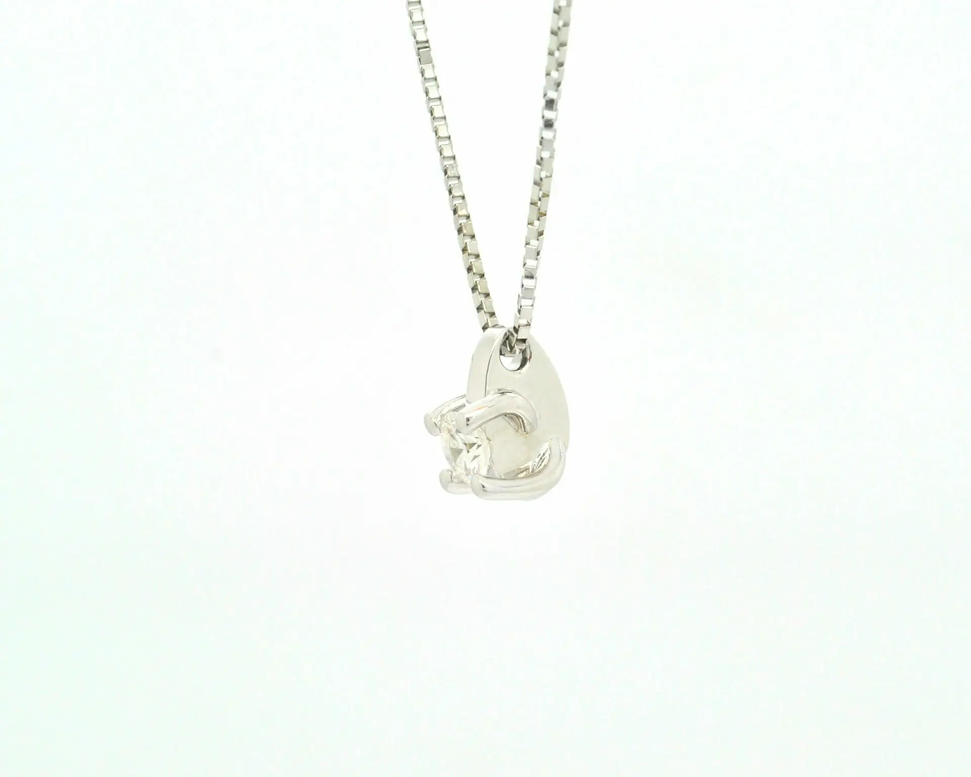 Collana originale Pomellato in oro bianco ct 750 peso gr. 4,7. Con diamante ct 0,20 colore G e purezza Vs.