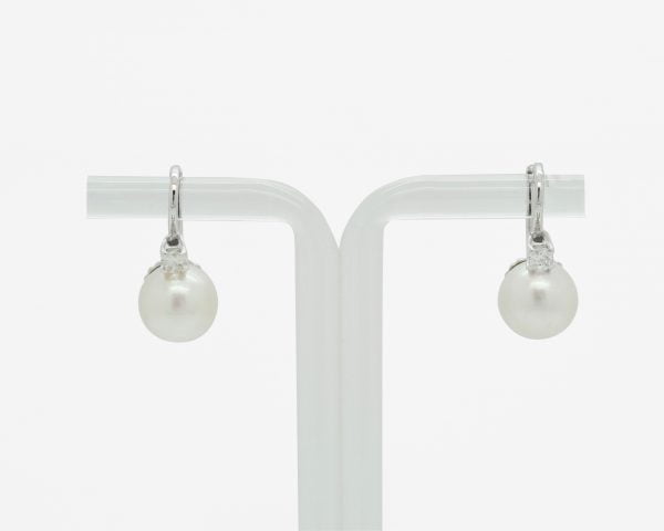 Orecchini in oro bianco 18 KT (750/000), dal peso di 4,6 grammi, impreziositi da perle Akoya dal diametro di 9 mm e diamanti naturali per un totale di 0,16 carati, colore G e purezza VS. Le perle, note per la loro lucentezza setosa e perfetta rotondità, sono affiancate da diamanti che aggiungono un tocco di brillantezza delicata. Un gioiello che unisce il fascino classico della perla giapponese alla fine eleganza del diamante, ideale per chi ama la raffinatezza senza tempo.