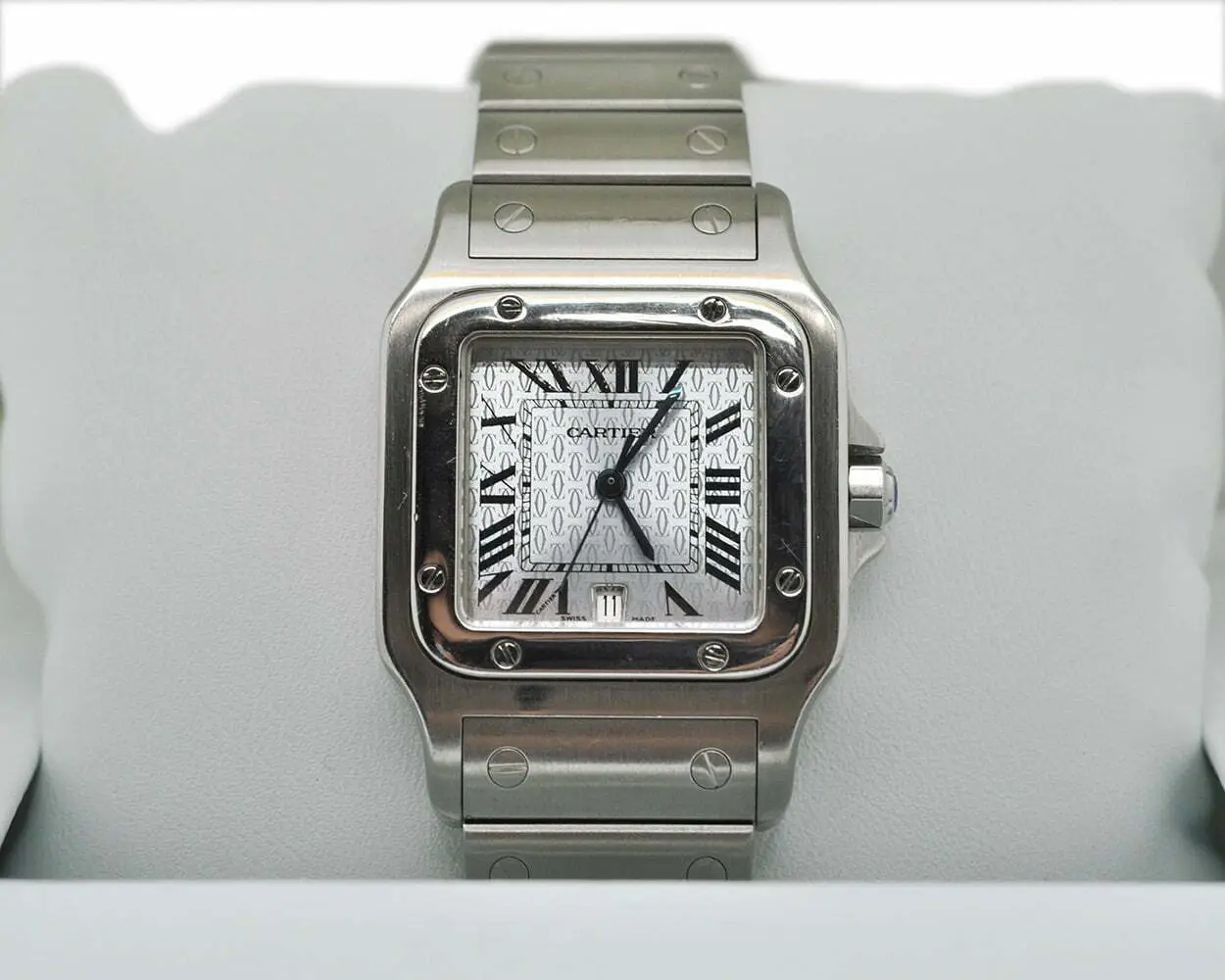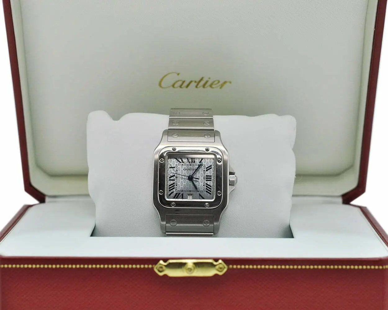 Orologio originale Cartier Santos Galbee 1564, movimento al quarzo, diametro cassa 29 mm, in acciaio inossidabile, vetro zaffiro, con scatola originale, e garanzia del negozio.