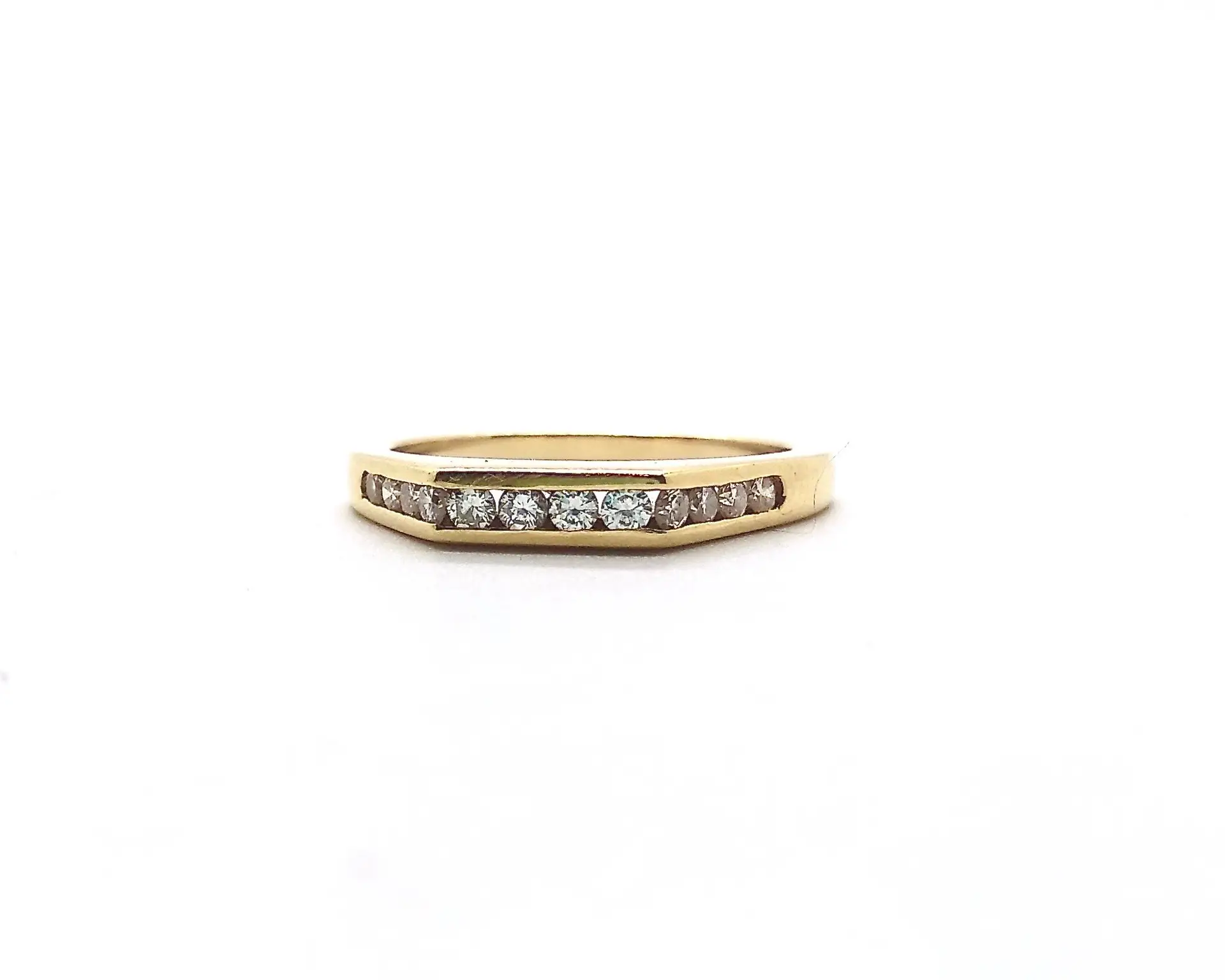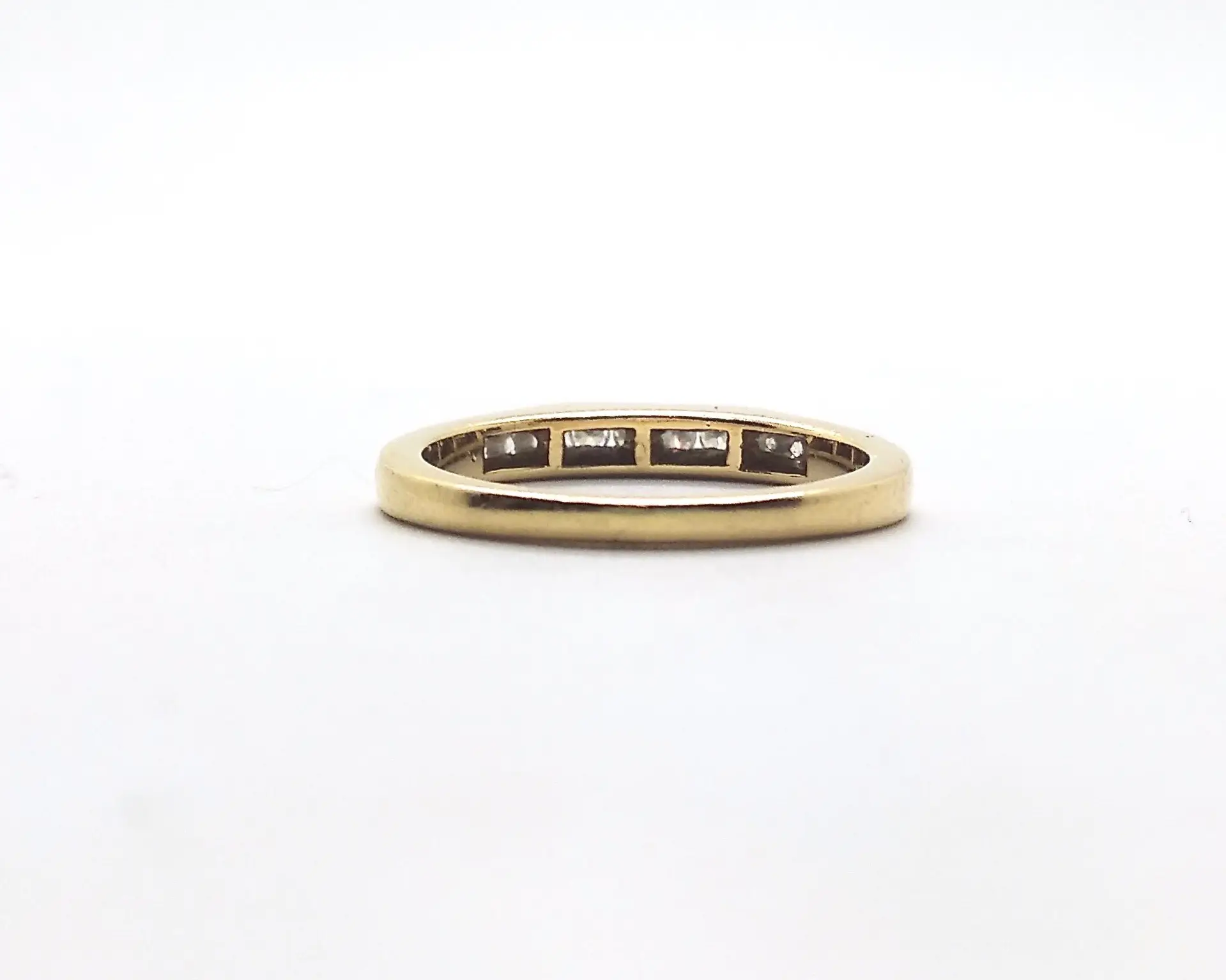 Anello riviere in oro giallo CT 750 del peso di gr. 3,8 e diamanti di CT 0,38, colore G e purezza VS.